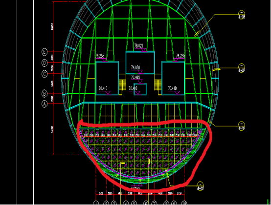 红色标注部位是玻璃幕墙斜屋面